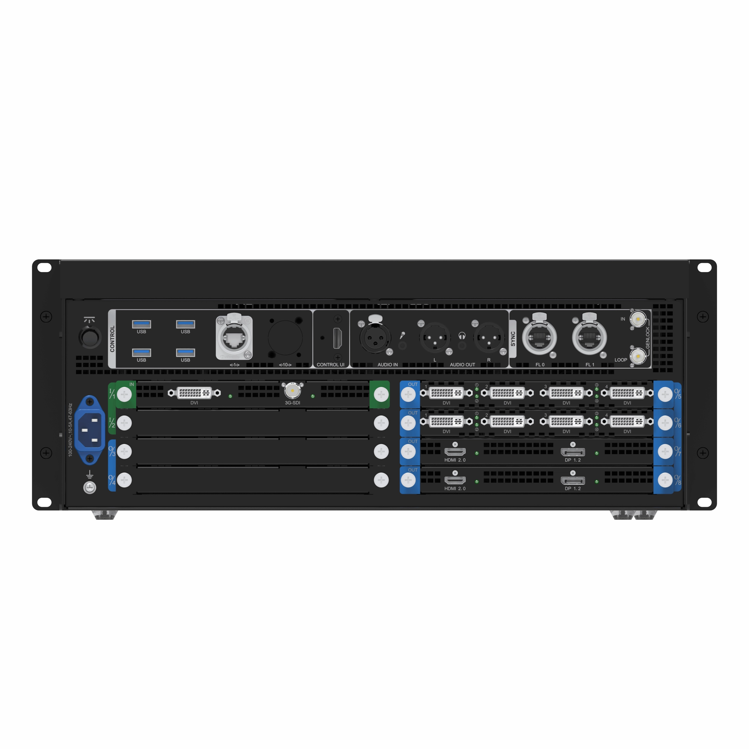 Designed with 2 input card slots and 6 output card slots, the X400 supports up to 2x 4K input cards and 4x 4K output cards simultaneously, offering a myriad of input and output connectors to meet your visual system requirements. Its modular and plug-in design facilitates easy deployment and upgrades, providing unmatched convenience and flexibility.